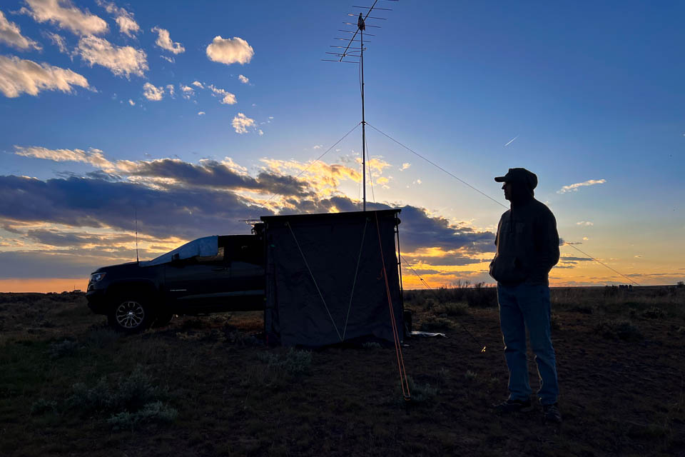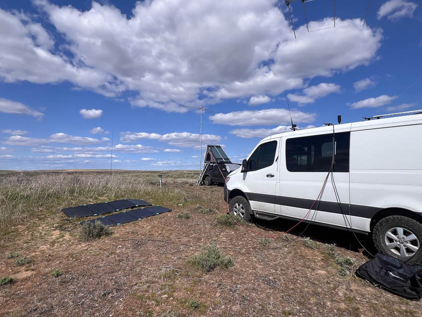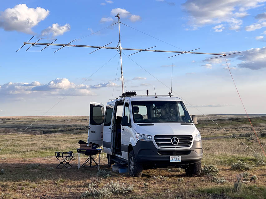 ![]() ![]() ![]() ![]() ![]() ![]() ![]() Ed N7PHY visited Twin Lakes Recreation Area for the WA State QSO Party in Sept 2021. It's open scab-land full of rocks, sage brush, and not much else. We picked a spot that was a compromise between max elevation and walking distance to the vault toilet at the lake that still had great views of the horizon in most directions. The weather was everything from sunshine to howling wind (~35 mph gusts) and horizontal rain. We normally setup outside under a canopy but had to pull the radio gear into the truck when it got too wild to operate outside. We even disassembled some of the camp to prevent it from blowing away. Did I mention there are no trees nor windbreak? Restrictions: Tie things down. Tie everything down. Burke Lake, DN07ad82